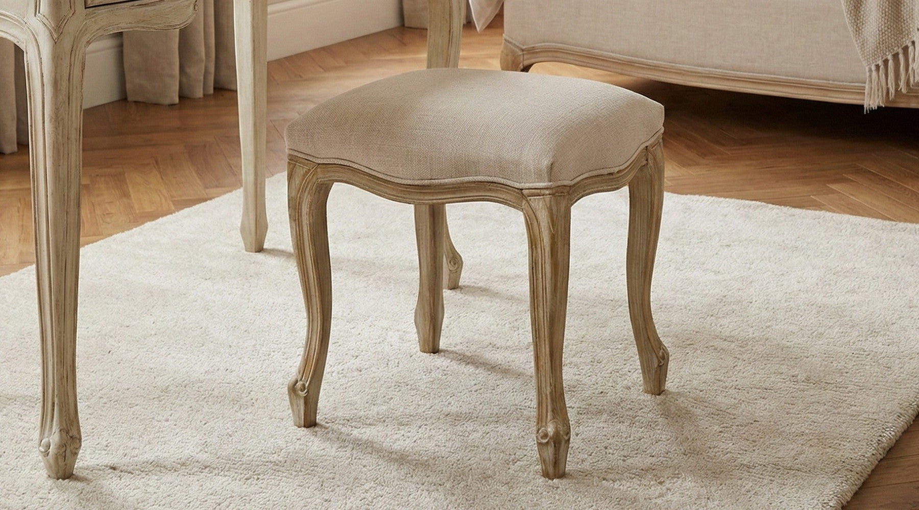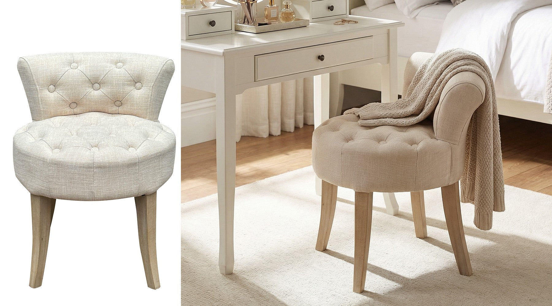 Dressing Table Stool With Padded Seat-White Wood, Cream Seat