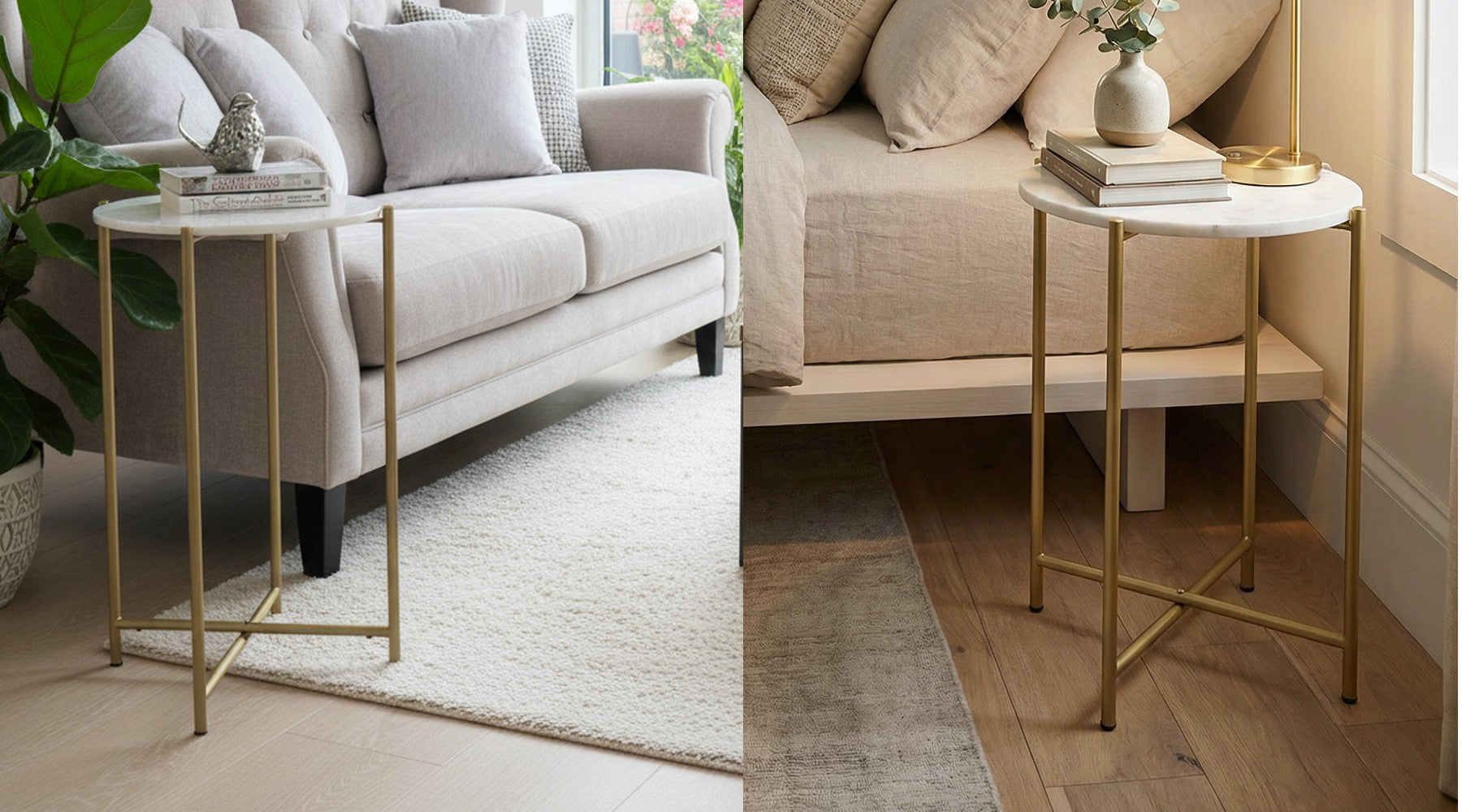 Clear Glass Side/End/Laptop Table-Zen Adjustable Round Table,Copper Base