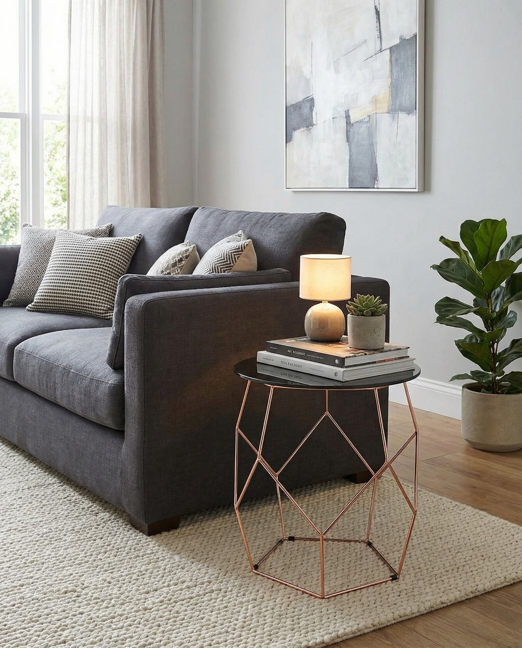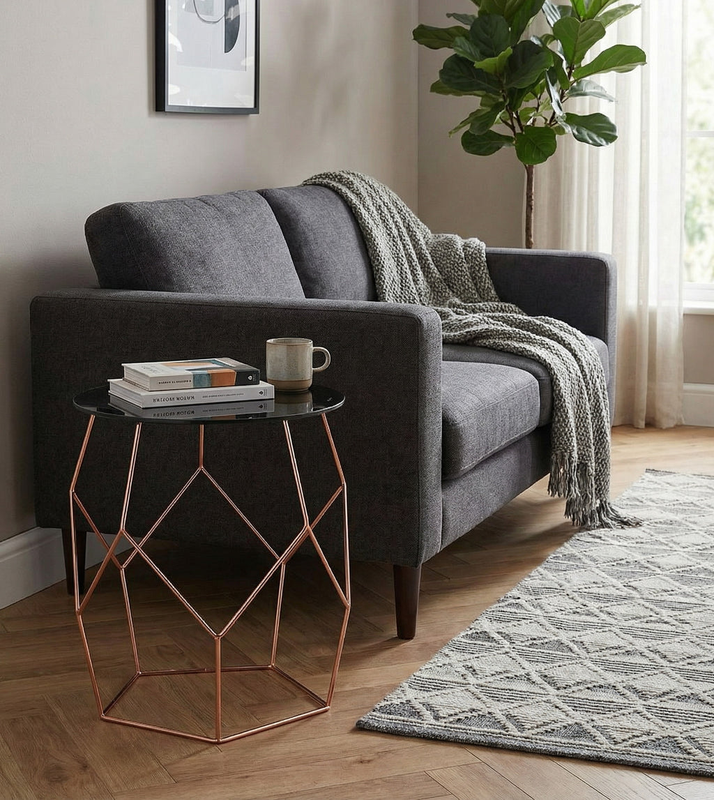 • Copper coating table in an incredible Geometric design. Great for adding a fashion statement to the Lounge, Conservatory or Bedroom.